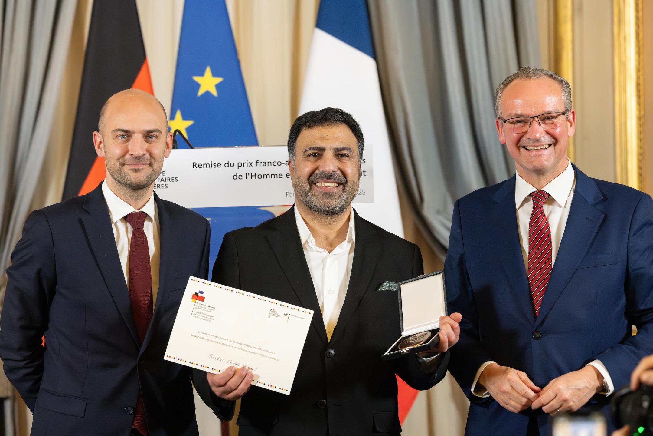 Verleihung des 🇩🇪-🇫🇷 Preises für Menschenrechte und Rechtsstaatlichkeit an den syrischen Fotografen Farid al-Madhan ("Caesar") 🏅 Der syrische Militärfotograf Farid al-Madhan floh 2013 aus seinem Land und nahm 55.000 Fotos mit, die die Verbrechen des Assad-Regimes dokumentieren. 📸 Diese Aufnahmen machten es möglich, Kriegsverbrechen zu belegen und strafrechtlich aufzuarbeiten. Auf ihrer Grundlage konnten zudem Sanktionen gegen das Assad-Regime verhängt werden. Der Mut, den al-Madhan 2013 aufbrachte ? elf Jahre vor dem Fall der Assad-Diktatur ?, ist kaum vorstellbar. Umso mehr war es mir eine besondere Ehre, ihn gemeinsam mit dem französischen Außenminister Barrot mit dem 🇩🇪-🇫🇷 Preis für Menschenrechte und Rechtsstaatlichkeit auszuzeichnen. Freiheit und Rechtsstaatlichkeit bilden das Fundament unserer Werte. Mit diesem Preis würdigen Deutschland und Frankreich Menschen, die Außergewöhnliches leisten, um diese Werte zu verteidigen ? in Europa und weltweit. 🌍 📸 Judith Litvine/MEAE. #Caesar #Syrien #Menschenrechte #DroitsdelHomme #Diplomatie #????_??????? #????? @jeannoelbarrot