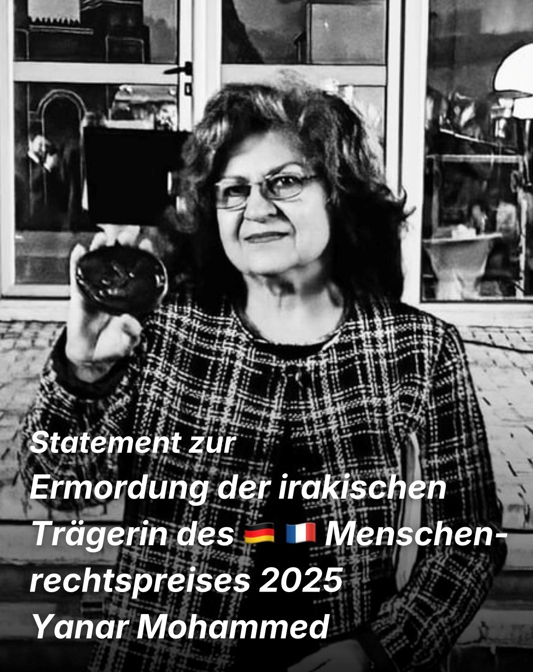 Statement zur Ermordung der irakischen Trägerin des deutsch-französischen Menschenrechtspreises 20025 Yanar Mohammed.